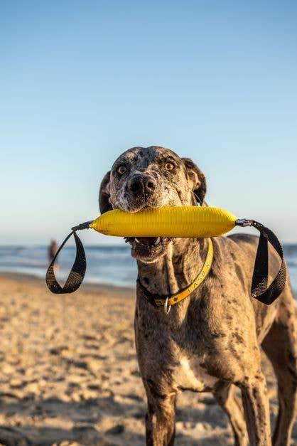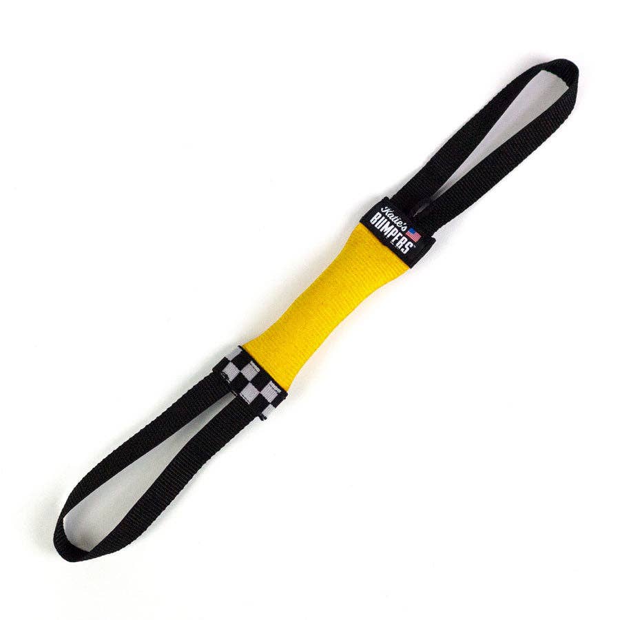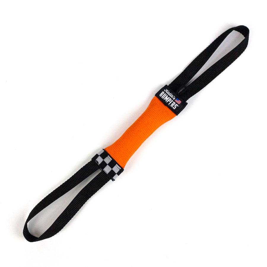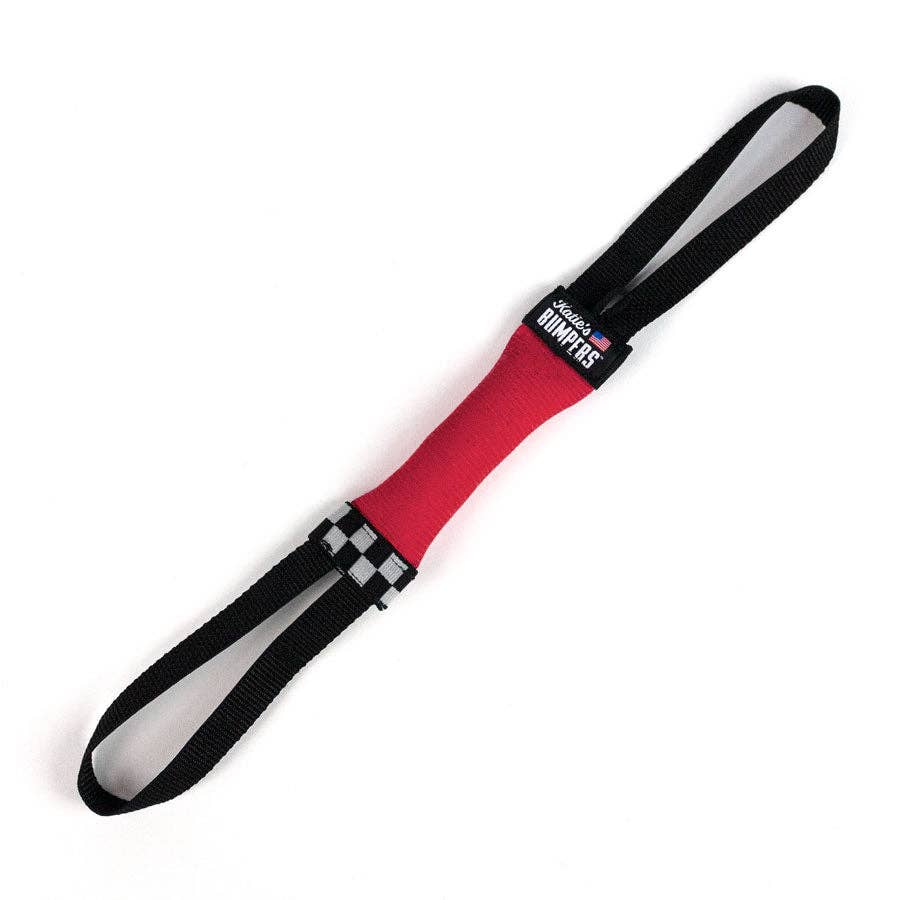 K9 Unit trainers have been using the Double Tug for target training for years by holding the handles on the ends, keeping the hands away from the dog's bite as it launches to bite down on the bumper. The handles on the ends can also be used for hanging the bumper when practising launching at a target, or for basic tugging fun with your pup.