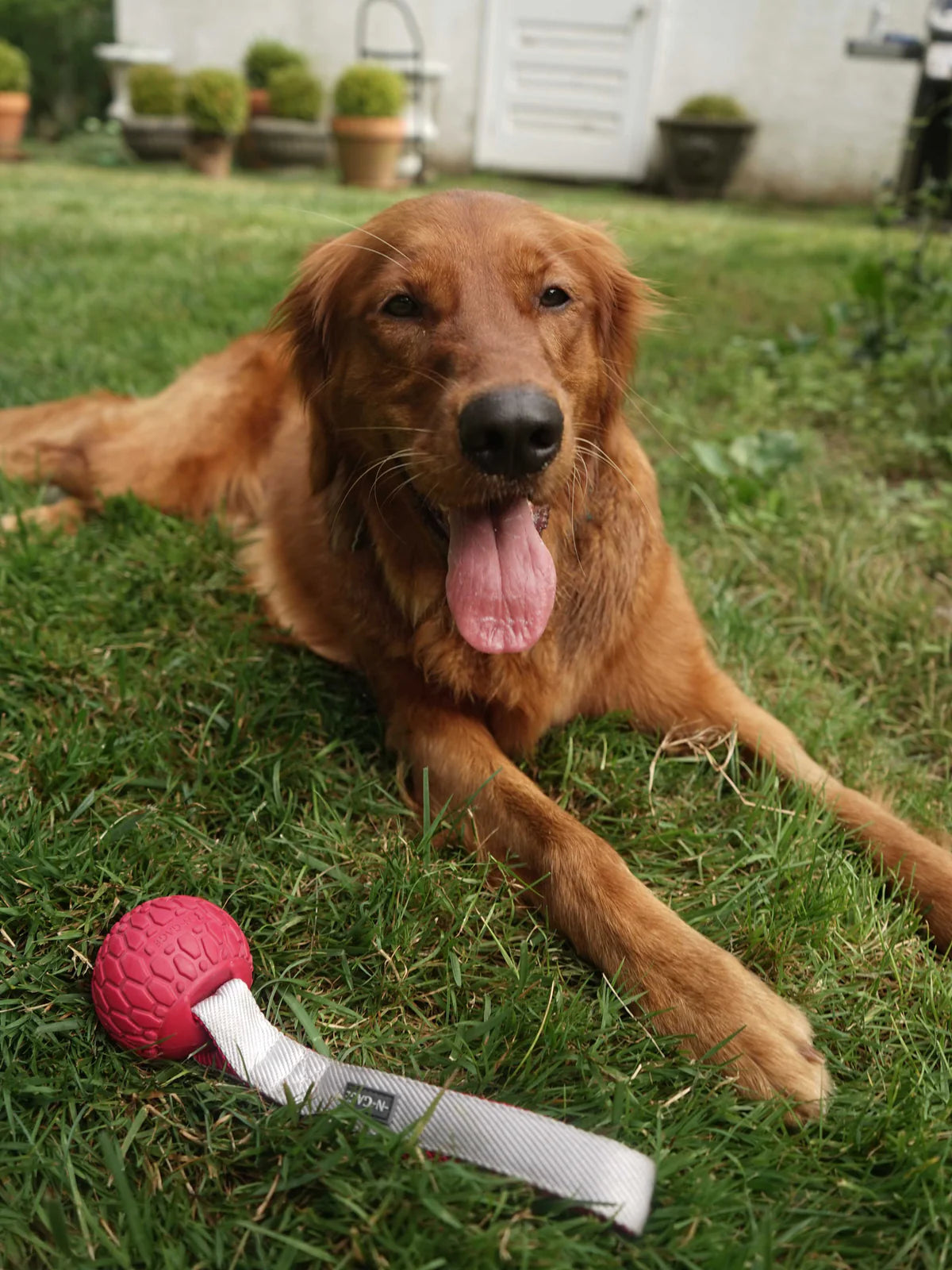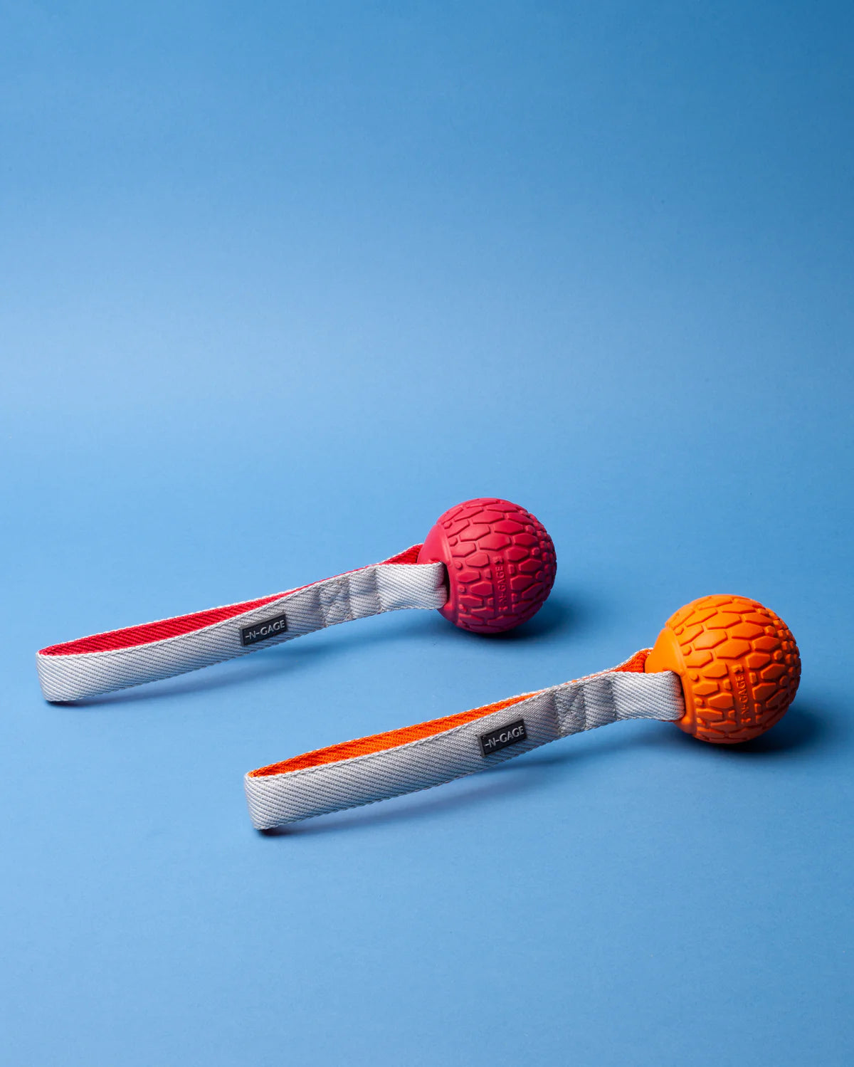 This version of the classic squeaker ball, but with an added handle for increased interactivity. High quality, leash-type handle, with ballistic nylon, triple stitched with reflective piping and soft inner for comfort and safety. Natural rubber that is durable enough for hard play, yet flexible enough for high bounces. Vibrant colors make it easy to spot from long distances