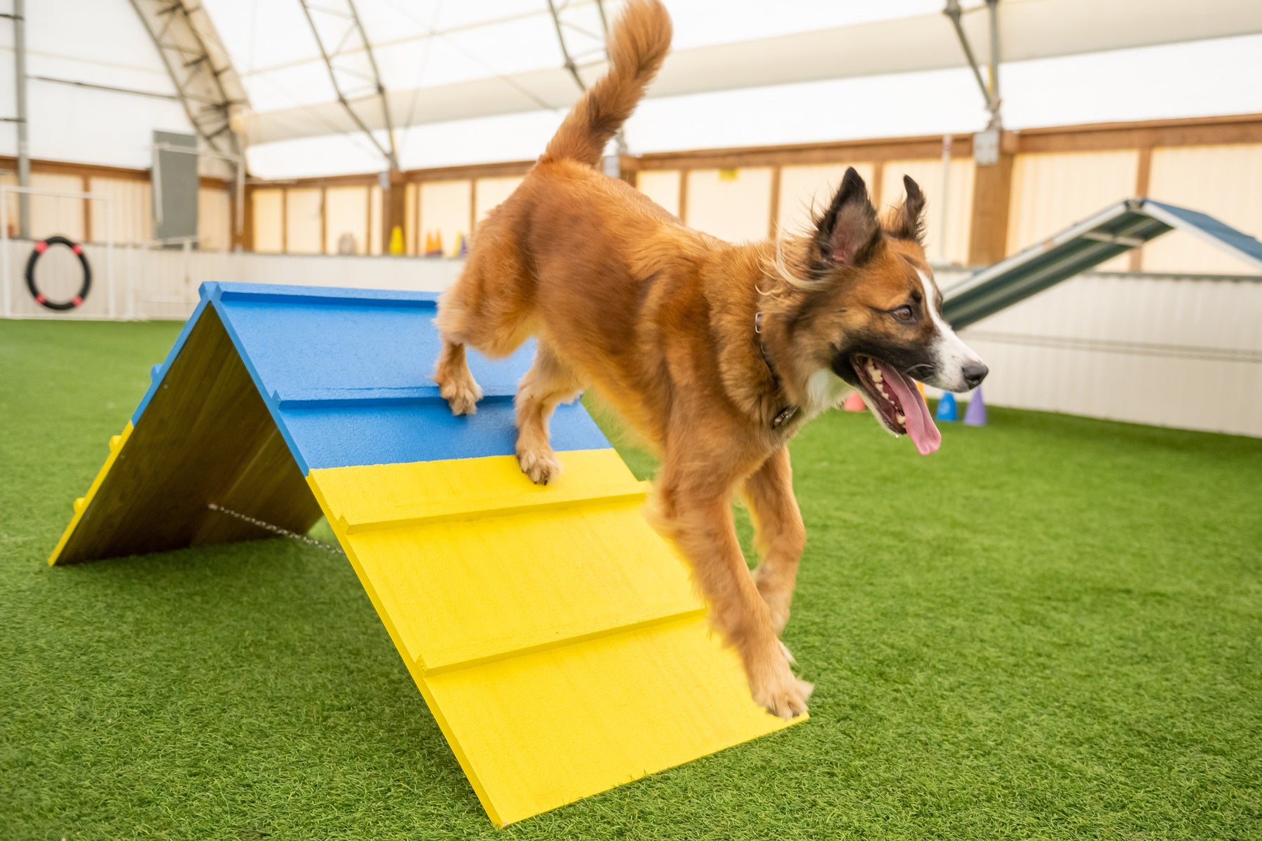 Boost your pup’s agility training with this A-frame! Quick, tool-free assembly, a non-slip textured finish, and colored contact zones make practice both safe and fun! Perfect for dogs under 100 lbs.